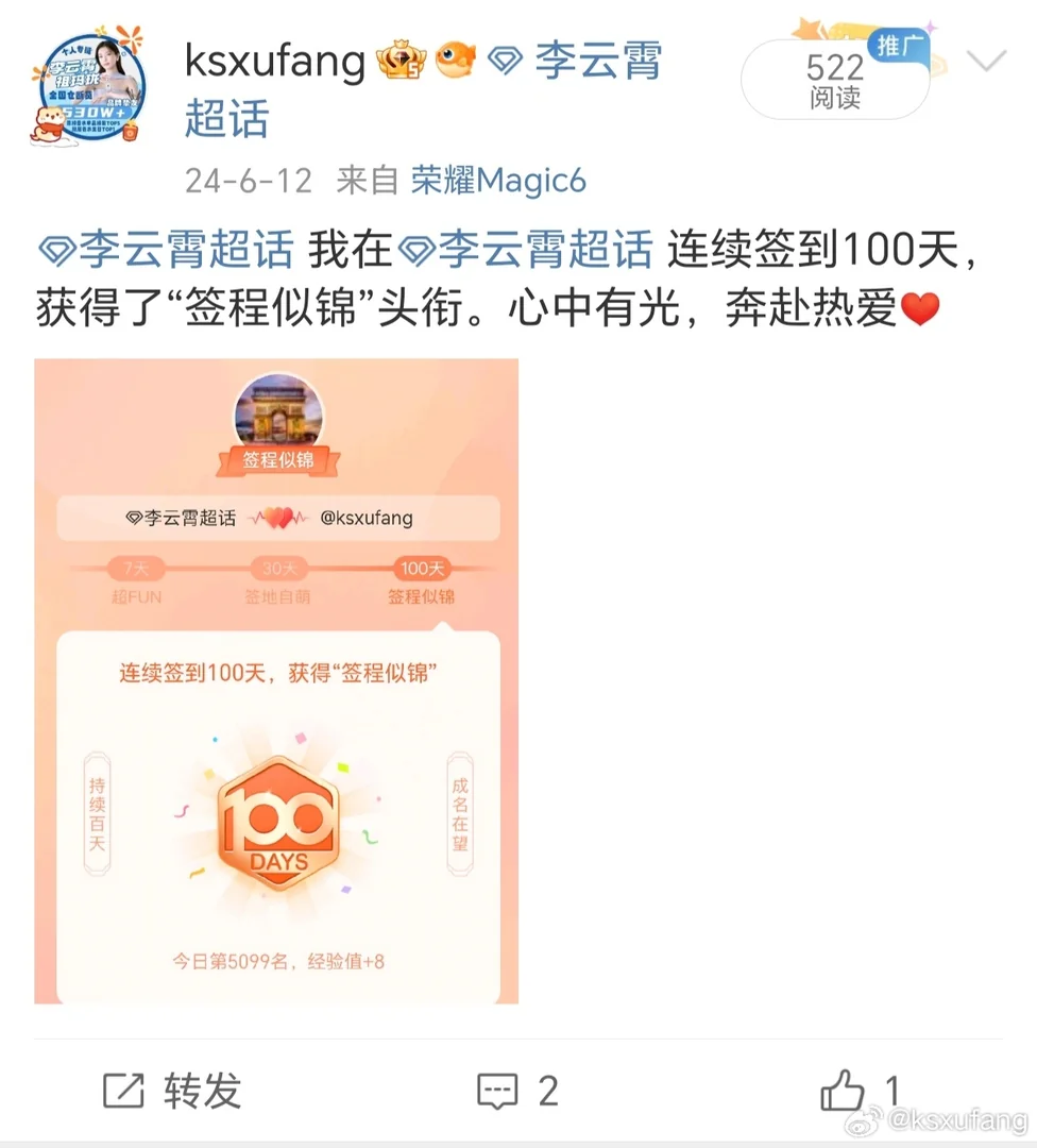 4、6月12日我正式在微博发帖承认是李云霄的人,我终于在网络上留下喜欢李云霄的