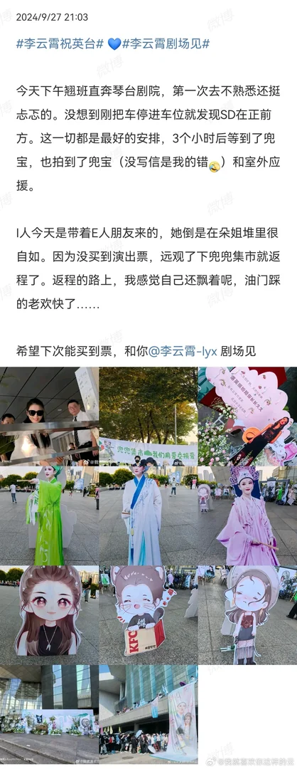 PS碎碎念:初恋追星的我还从来没线下追过人,又因为人特别i心里犹犹豫豫的,到第二天上午诡秘帮我做了决定,中午下班直接拉着我就去琴台大剧院了,还是翘班去的。现在回想起来还是很感激她的,不然我就不知道自己错过了什么大宝贝😂